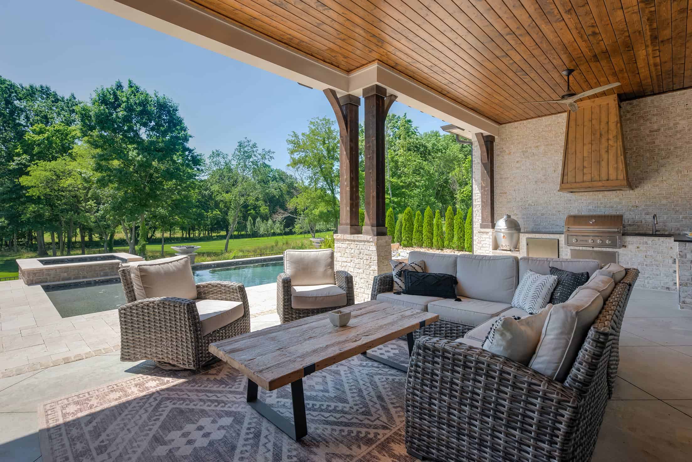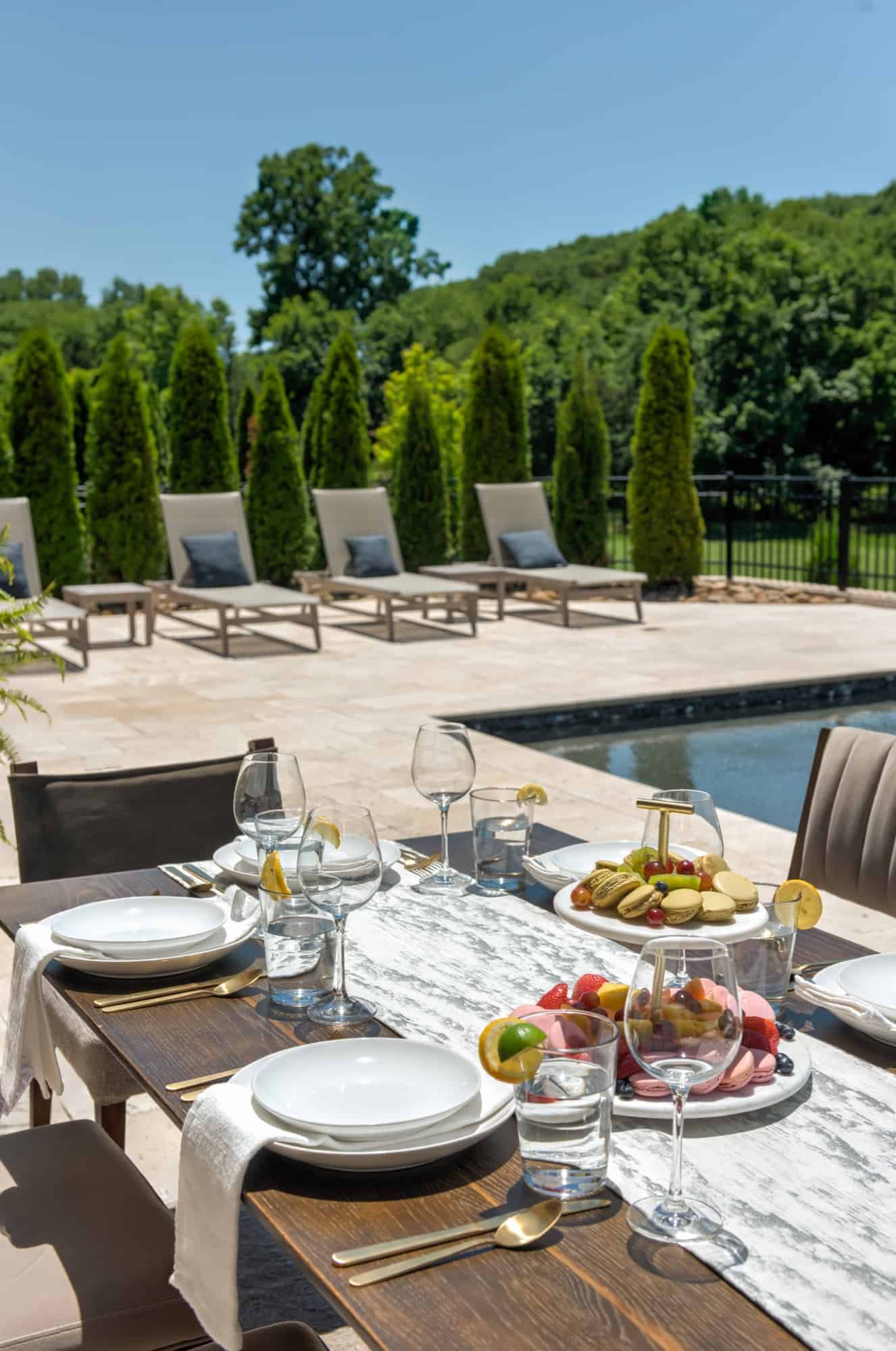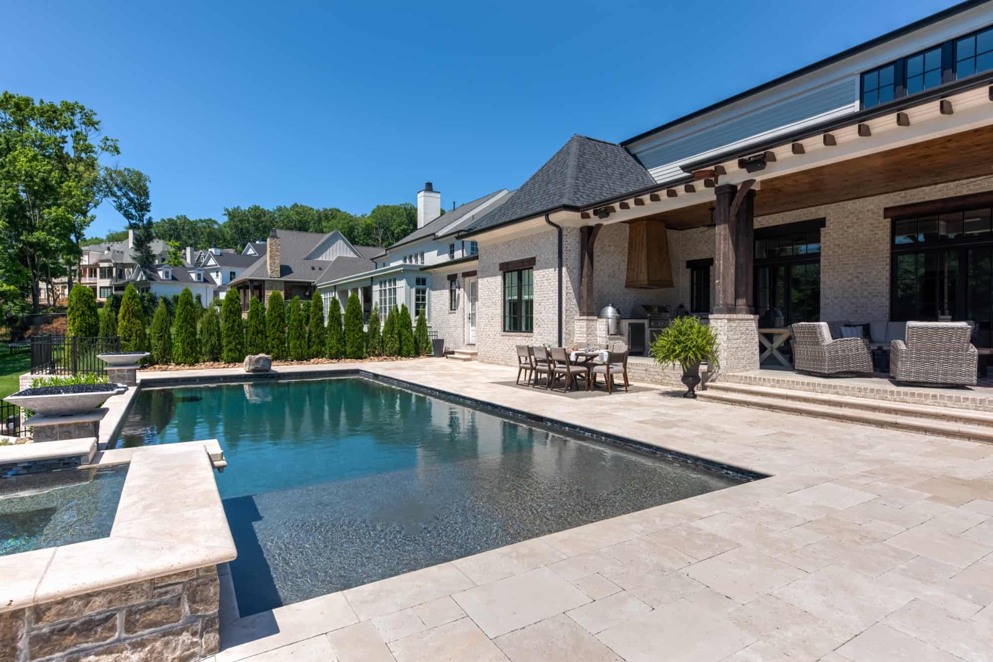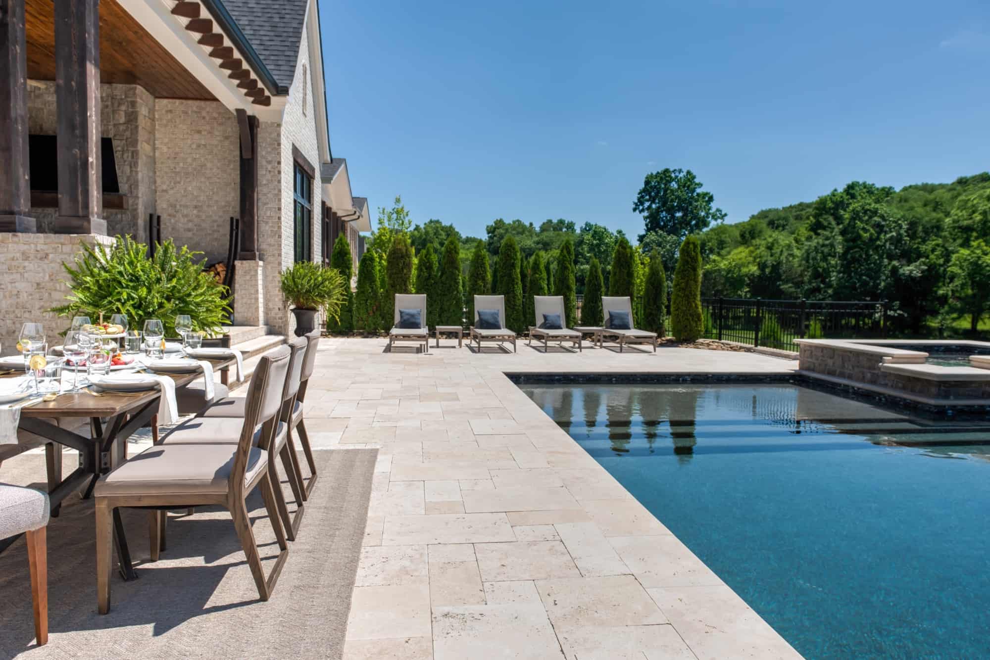 Showcase your property views at every angle. This project features a pool with a large deck perfect for sunbathing or hosting a large dinner with friends. It also has a grand entrance with retaining walls and a landing deck perfect for watching the sunset or talking a moment in nature.
