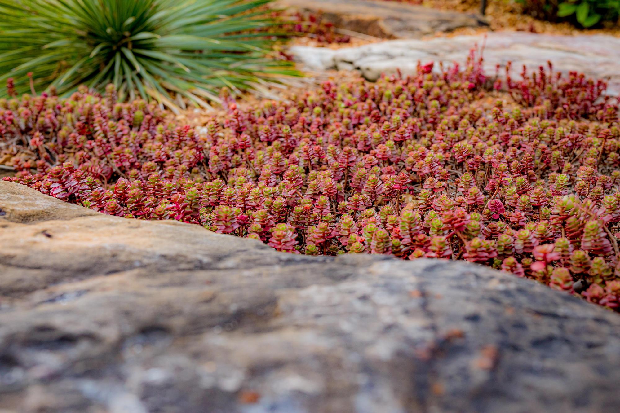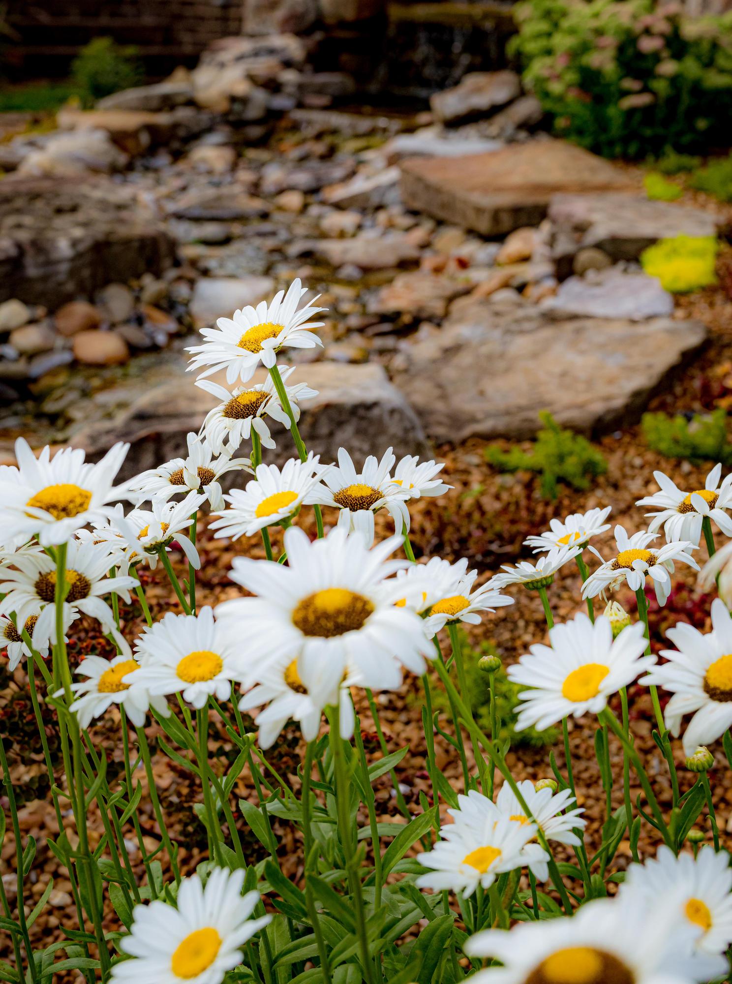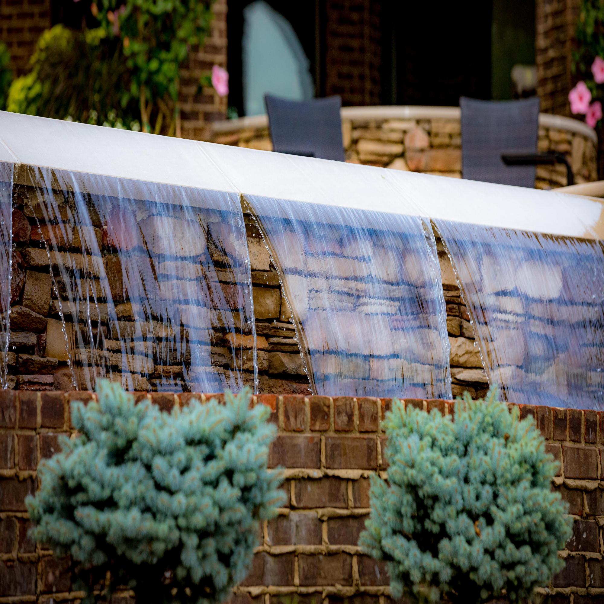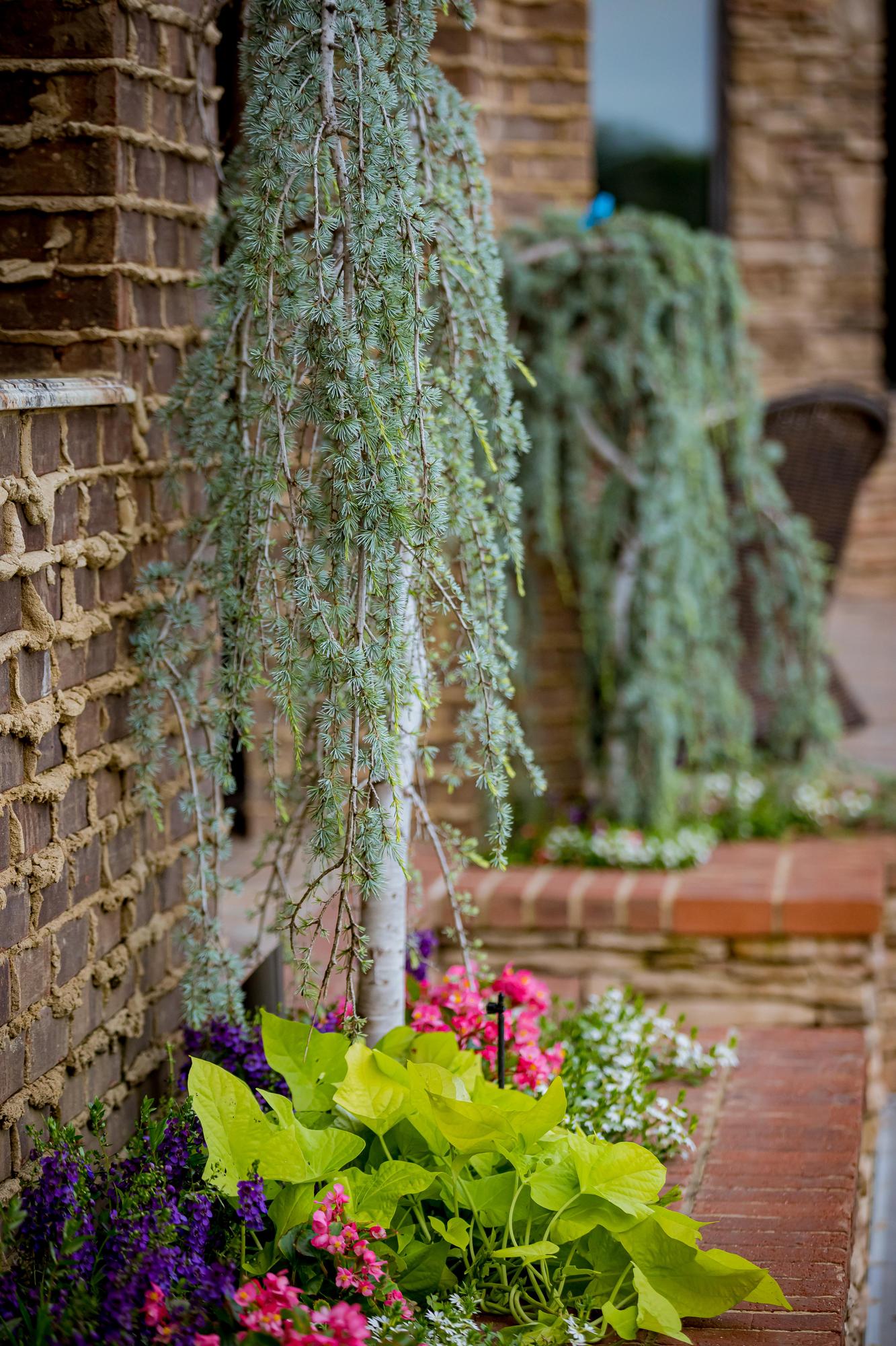 This property is a plant enthusiast’s paradise. This project features lush trees, sweeping softscapes, and a variety of florals handpicked for the homeowner and their love for variety. Our team added a creek to give the property dimension and visually transition the home into the existing landscape.