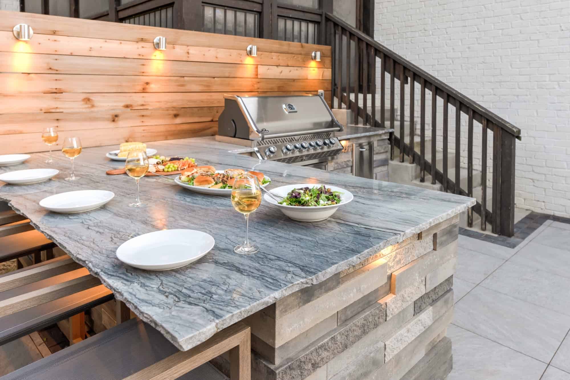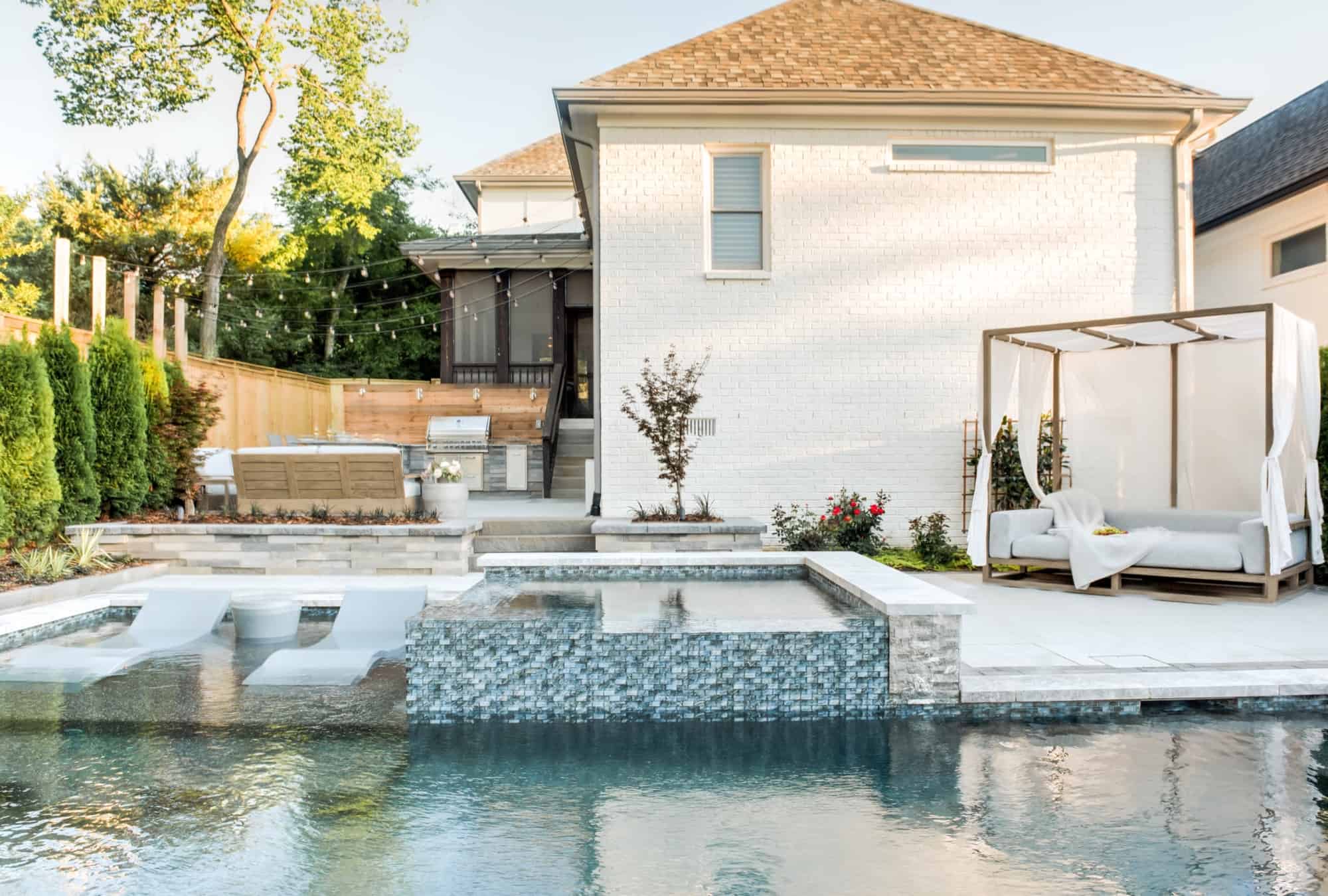 This property proves that you can indeed have it all, irrespective of your yard size! This property includes a pool, whirlpool, fire feature, lounge area, and outdoor kitchen! We customized each detail to be functional and appropriately sized to not crowd homeowners and guests. It’s the perfect place to entertain guests or sit quietly with a captivating book.